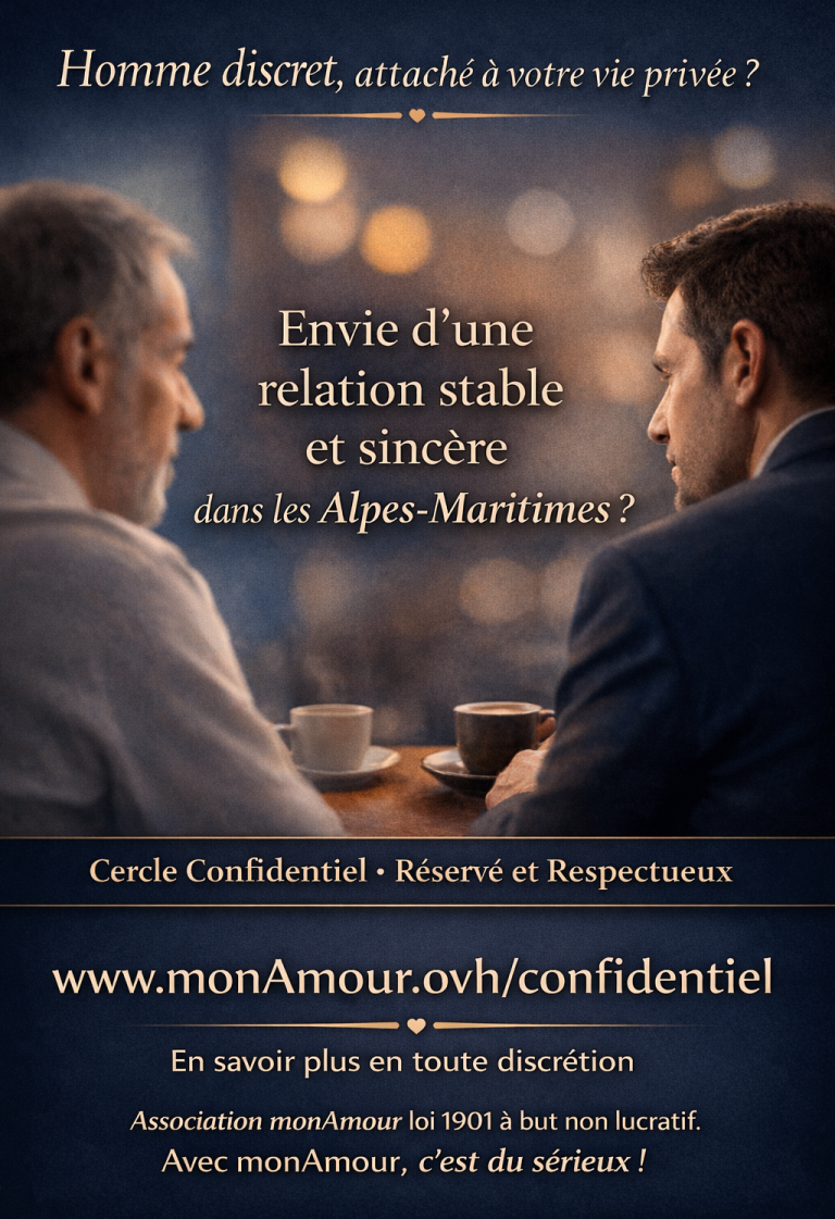 Mentions légales ©Droits d'auteur monAmour - Tous droits réservés - Hébergeur : IONOS - Directeur de la publication : le président de l'association monAmour mail : contact@monamour.ovh - Collectes des données conformément au RGPD et à la loi Informatique et Liberté - Association loi 1901 à but non lucratif monAmour rayonnant dans l'ensemble des Alpes-Maritimes et à Monaco. Mode Public - Mode Privé - Mode Matrimonial. Déclaration en Préfecture des Alpes Maritimes - RNA W061018021 - Association LGBTQIA+ monAmour - 06000 Nice - Tel 06 71 20 51 79 - siret 99387255500012 - code APE 94,99Z